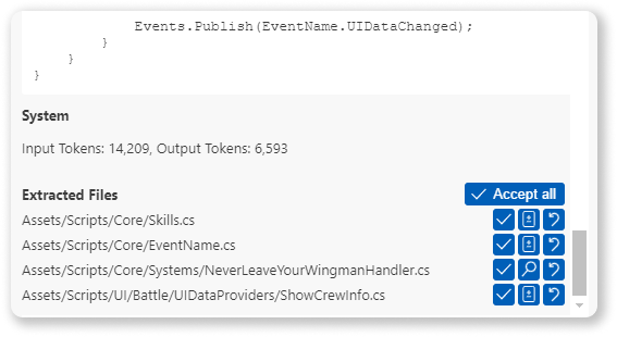 Selective Acceptance: Accept or reject changes on a per-file basis.